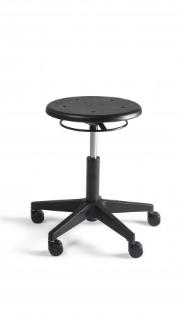 Werkkruk CS PU Nylon, ronde PU zitting, zwart voetkruis