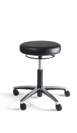 Werkkruk CS PVC Aluminium, kunstlederen zitting, aluminium gepolijst voetkruis