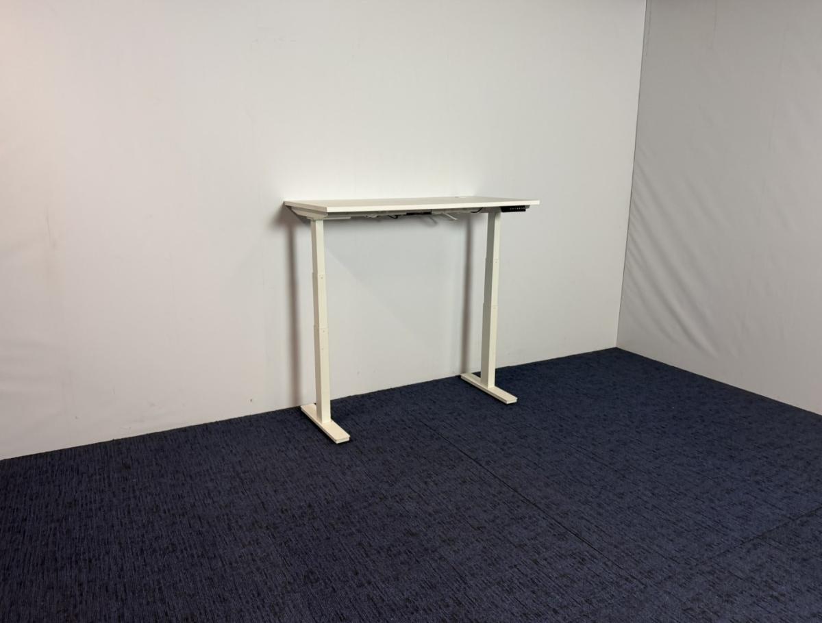 Zit/sta bureau Voortman (elektrisch), wit blad, wit onderstel, 120 x 60 cm.