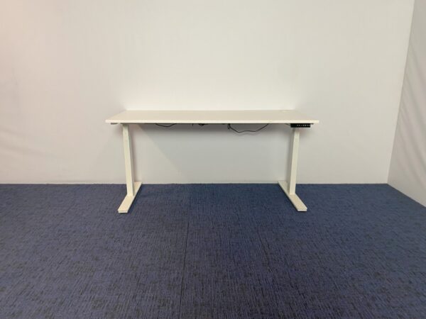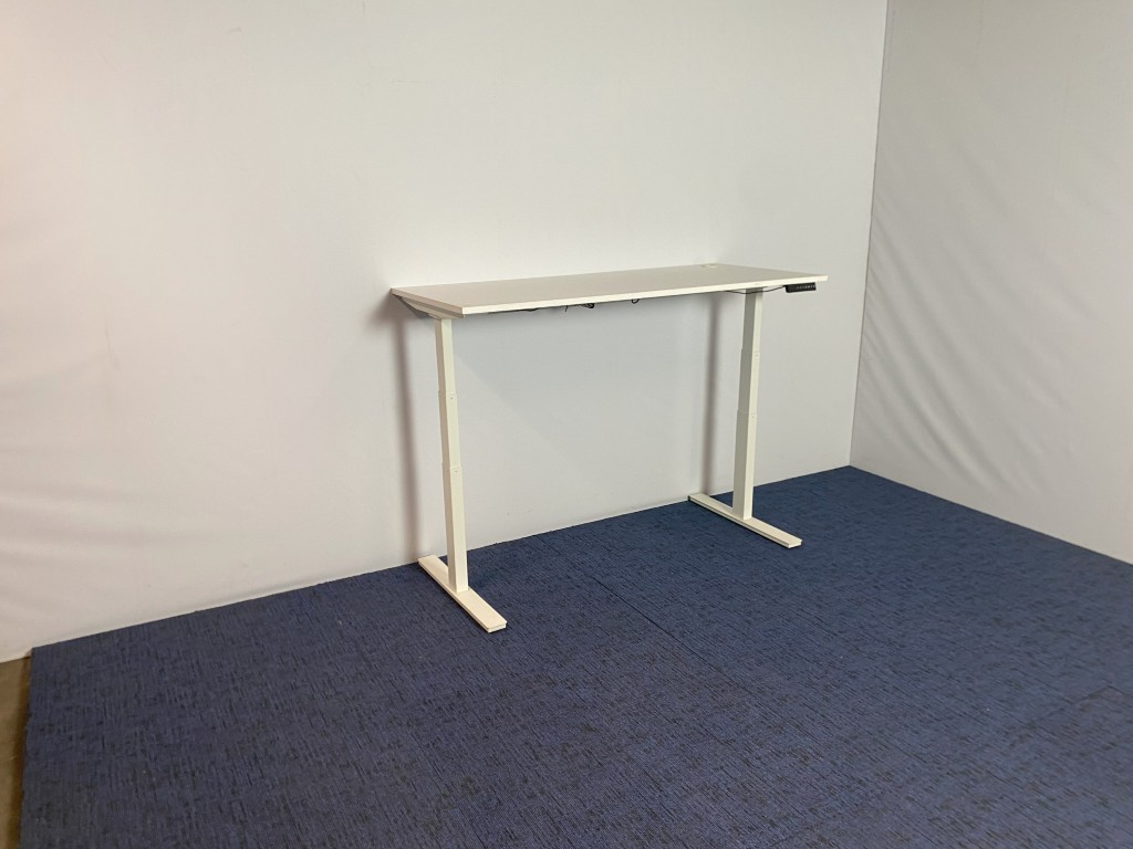 Zit/sta bureau Voortman (elektrisch), wit blad, wit onderstel, 160 x 70 cm.